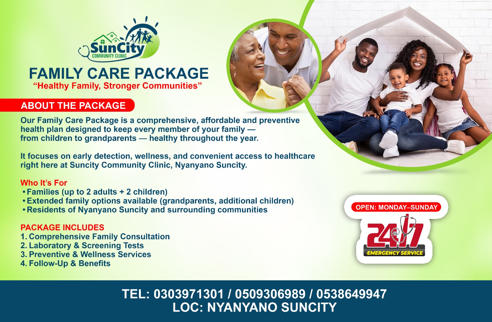 It focuses on early detection, wellness, and convenient access to healthcare right here at Suncity Community Clinic, Nyanyano Suncity.